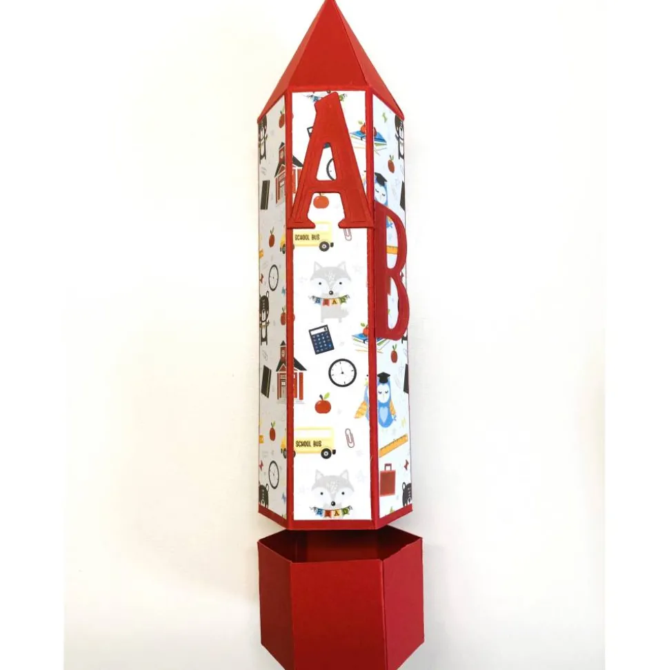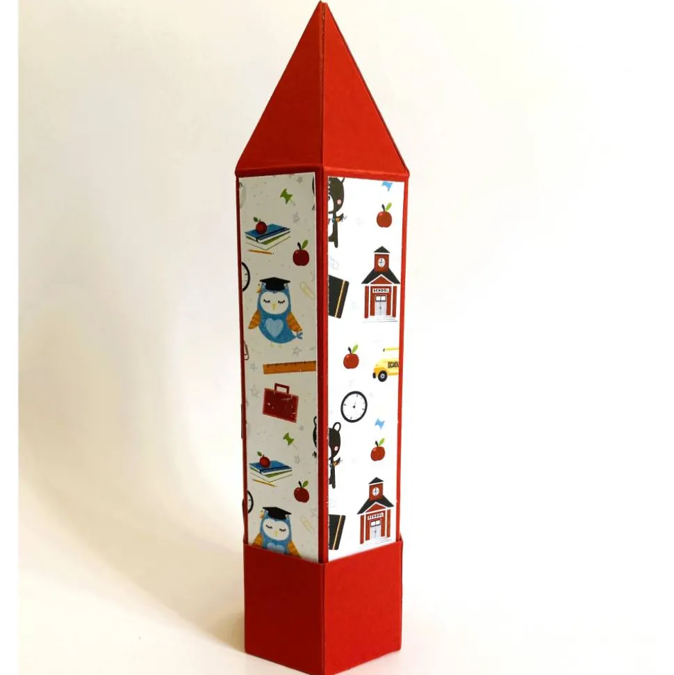 Du erhältst eine liebevoll handgefertigte Geschenkbox aus Karton, gestaltet als bunter Buntstift. Diese Verpackung ist ideal, um kleine Überraschungen wie Süßigkeiten, ein Geldgeschenk oder praktische Kleinigkeiten für die Schule stilvoll zu überreichen.