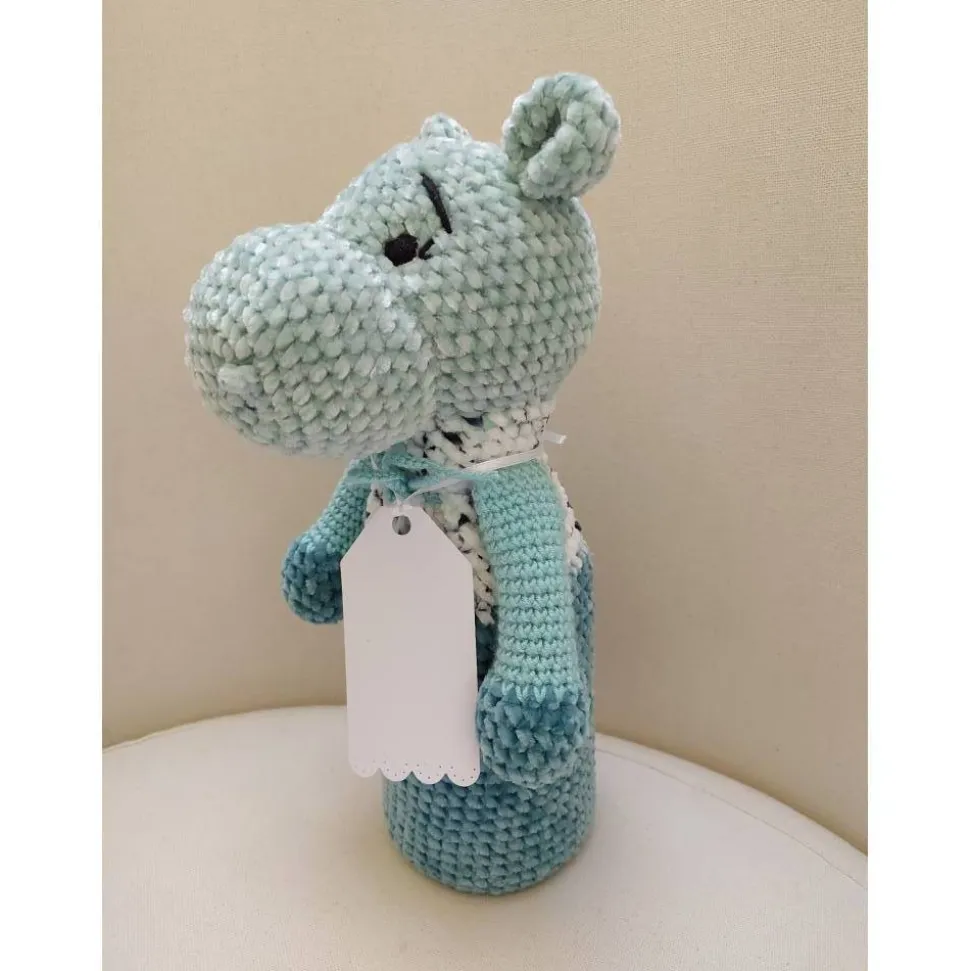 ** das Nilpferd hat aufgestickte Augen