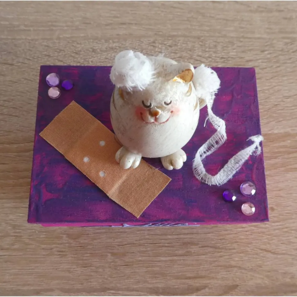 Dekoriert wurde die Truhe mit einer Katze, Verbandszeug und Pflaster