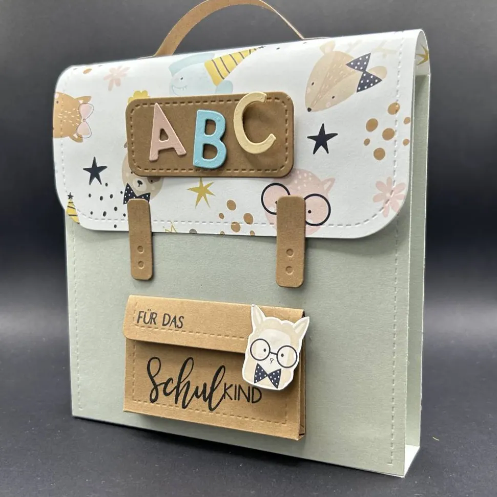 Gerne entwerfe ich auch dazu passend eine Karte zur Einschulung, eine Gutscheinverpackung oder Gastgeschenke für die Feier.
