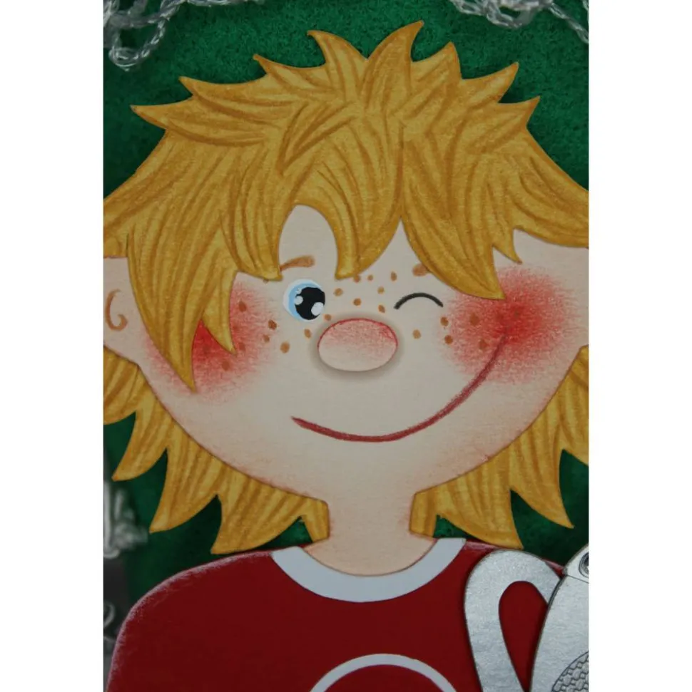 „Finns“ Trikot, Hose und Socken sind aus rotem Fotokarton, doppelt gearbeitet. Ein echter Hingucker sind „Finns“ Fußballschuhe!