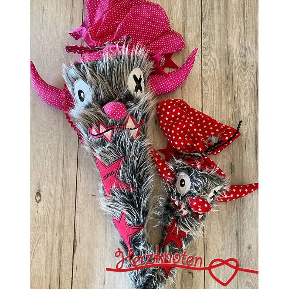 Geschwistertüte, Zuckertüte klein, Monster, Schulstart, Stoff, Fell, personalisierbar, Schultüte, Geschwister, Kissen