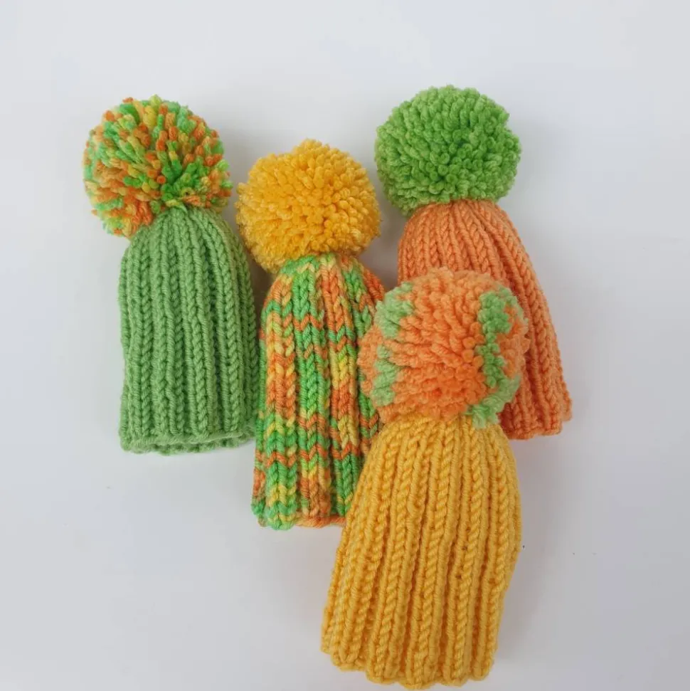 Gestrickt sind die kleinen Mützen aus hochwertiger Markenschurwolle (Merino).