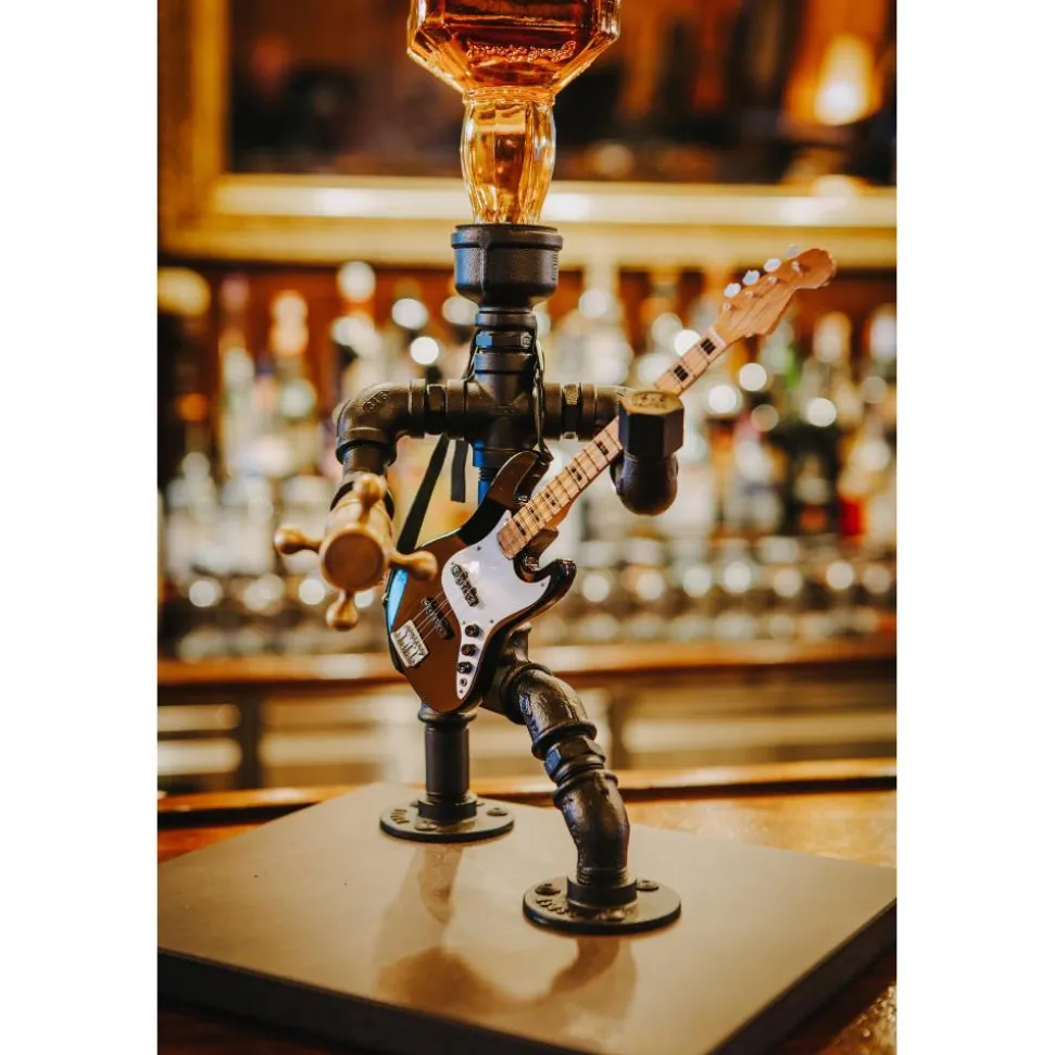 Sein zeitloses Design macht ihn zum Hingucker auf jeder Feier, egal ob Hausbar, Gartenparty, Grillabend oder Geburtstag. Dank der Montage auf einem Holzbrett ist der Getränkespender sofort und überall einsatzbereit. Im Lieferumfang enthalten sind eine Glasflasche und eine stilvolle, ca. 24 cm große, handgefertigte Miniaturgitarre aus Holz – detailgetreu per Airbrush gestaltet und mit Standfuß sowie Riemen zum Aufhängen ausgestattet.