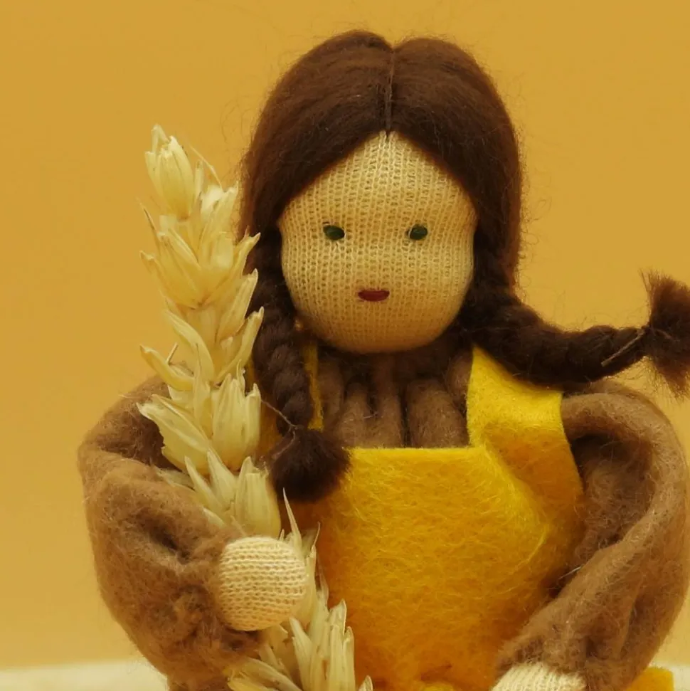 Das Püppchen ist unten geschlossen und für einen guten Stand unten mit feinem Dekokies und der Rest mit reiner Schurwolle gefüllt.