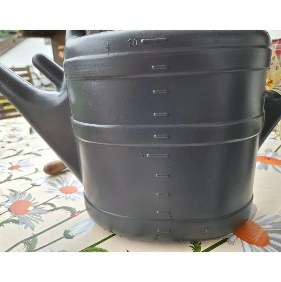 – eine handelsübliche Kunststoff Gießkanne 10 Liter in Anthrazit mit Gießtülle