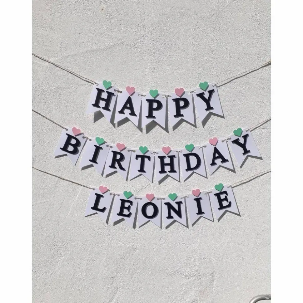 Auf Wunsch kann die Girlande mit dem Namen des Geburtstagskindes personalisiert werden.