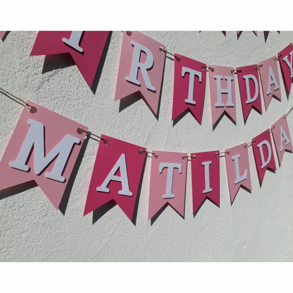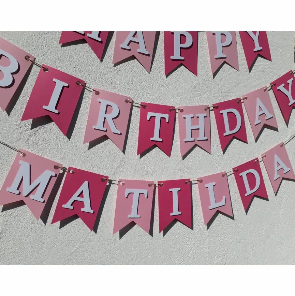 Girlande Wimpelkette Happy Birthday mit Personalisierung Geburtstagsgirlande auf Wunsch mit Namen