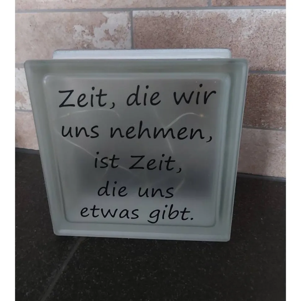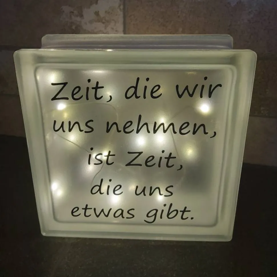 Wir verkaufen von uns beschriftete und beleuchtete Glasbausteine.