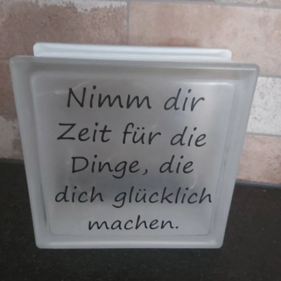 Wir verkaufen von uns beschriftete und beleuchtete Glasbausteine.