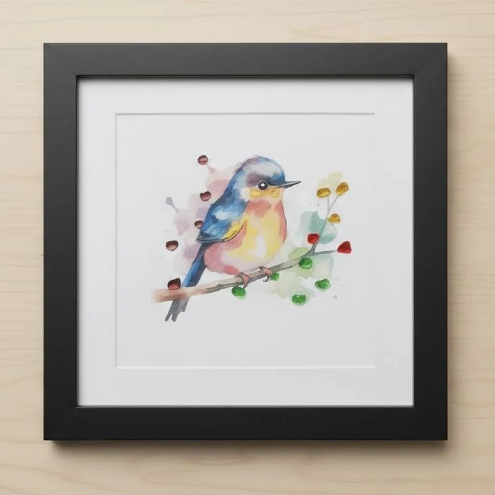 Das Bild wird in einem hochwertigen Rahmen ohne Glasscheibe geliefert, bei 20×20 cm mit Glasscheibe.