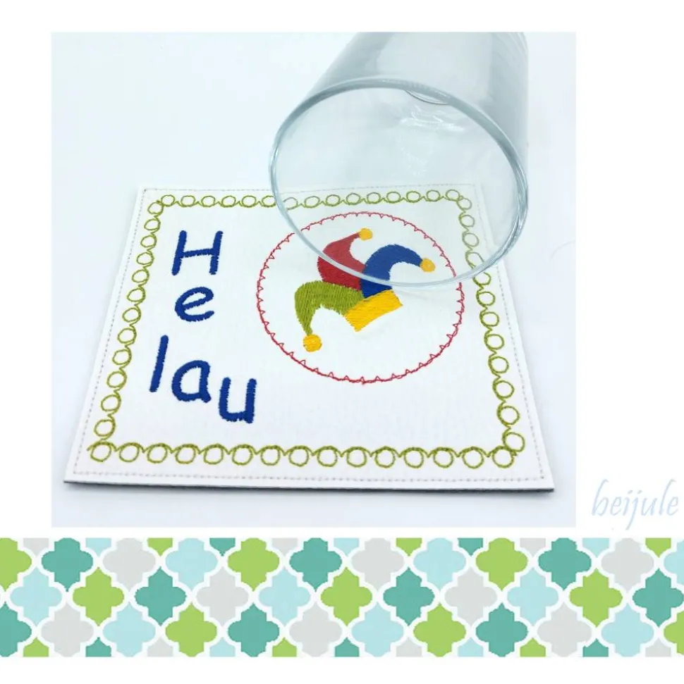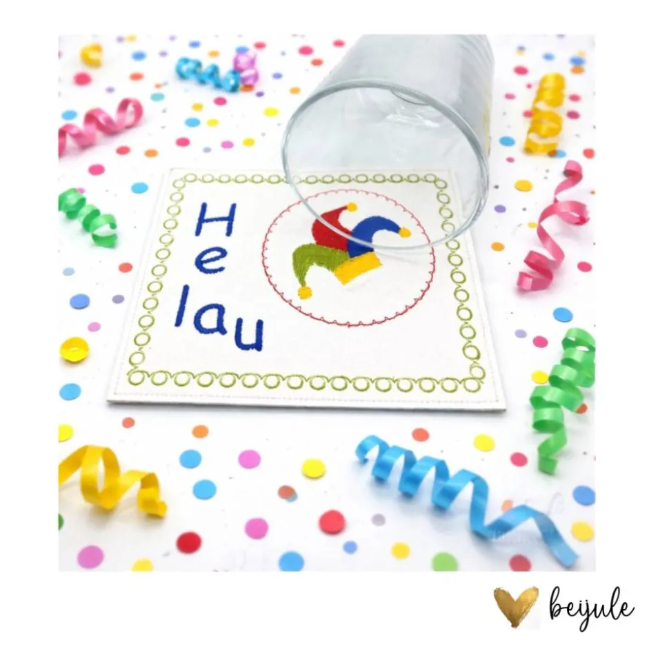 Durch die frei wählbaren Stickfarben lässt sich der Untersetzer individuell gestalten und perfekt an jedes Karnevals- oder Faschingskonzept anpassen. Ob für gesellige Runden, Karnevalspartys oder als kleines Geschenk – dieser Untersetzer ist ein stilvoller Hingucker mit praktischem Nutzen.