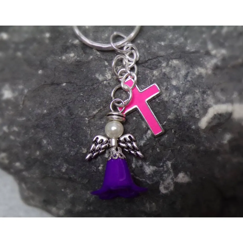 Glaube Firmung Kommunion Taufe Konfirmation Kreuz Engel Schlüsselanhänger lila