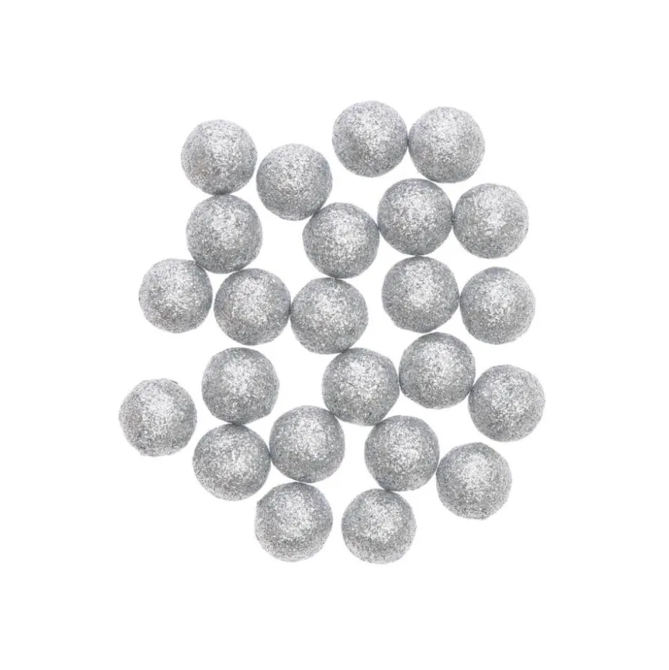 Glitzerkugeln für die weihnachtliche Dekoration. Zum Basteln von Adventskränzen oder Weihnachtsgirlanden. Die aus Dekoschaum gefertigten Kugeln lassen sich mit Kleber befestigen oder an einem Faden aufreihen.