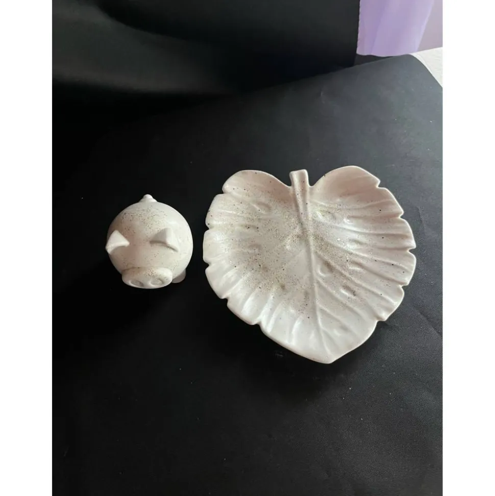 Der Tablett hat die Form eines Blattes und ist ca.14 cm lang und 10 cm breit