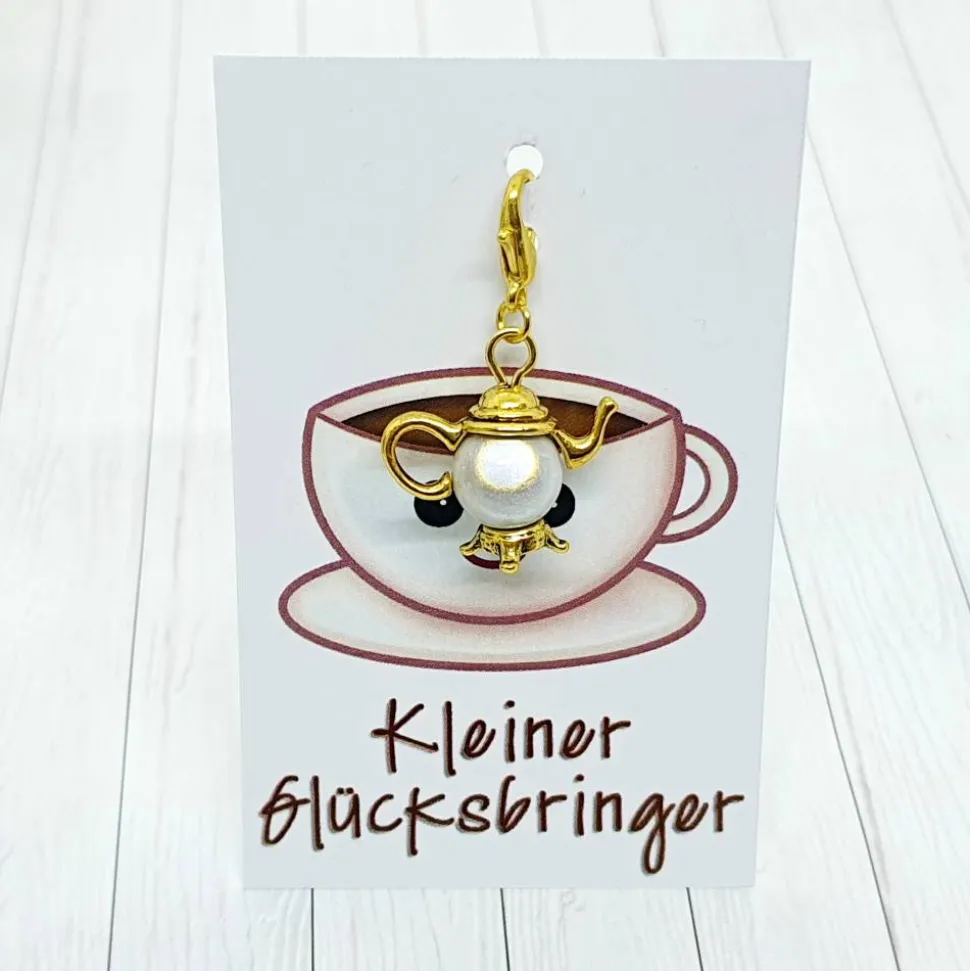 Entdecke die Glücksbringer Kanne in goldfarben/weiß – ein bezaubernder Anhänger, der das Herz jedes Tee- und Kaffeeliebhabers höherschlagen lässt! Ob Tee oder Kaffee dein Favorit ist, spielt keine Rolle, denn dieses Kännchen passt zu jedem Heißgetränkliebhaber und ist als Geschenk oder Mitbringsel einfach immer eine tolle Idee.