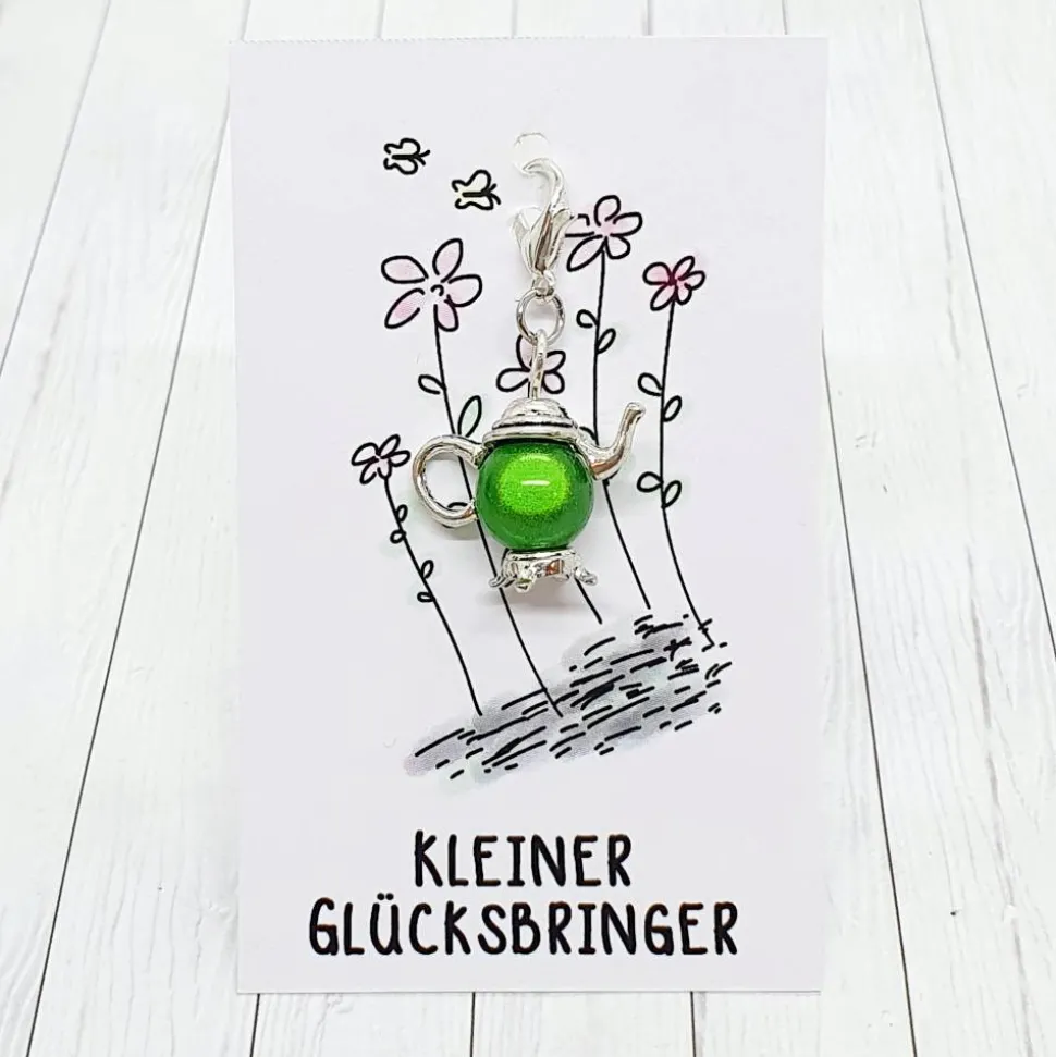 Glücksbringer Kanne silberfarben/grün – das perfekte Accessoire für alle, die Tee oder Kaffee lieben! Bei diesem liebevoll gestalteten Anhänger spielt es keine Rolle, ob Du Kaffee- oder Teetrinker bist – die süßen Kännchen passen zu jedem Heißgetränkliebhaber.