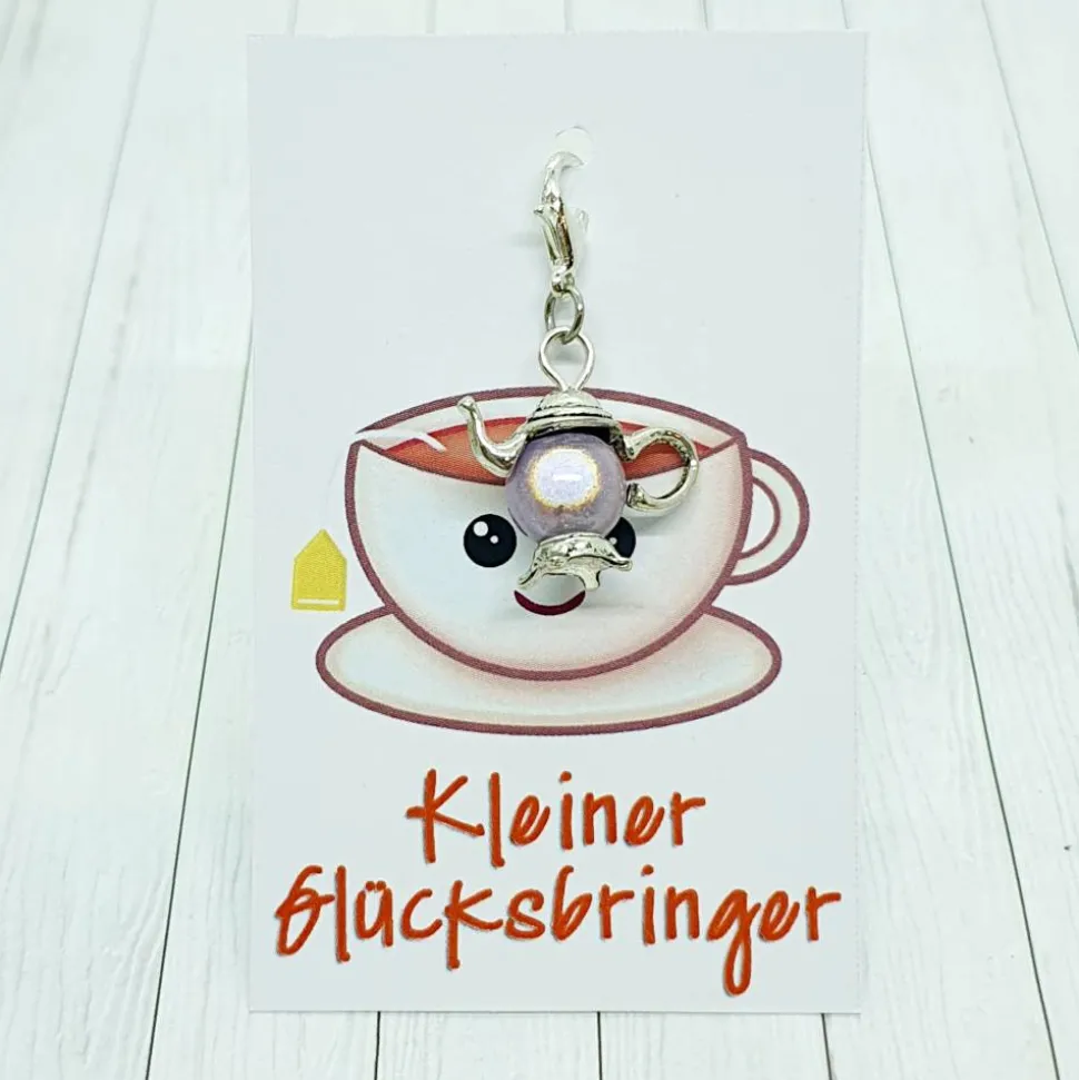 Du suchst ein niedliches Geschenk für einen Heißgetränkeliebhaber? Die Glücksbringer Kanne in silberfarben / puderlila eignet sich perfekt als kleiner Anhänger für Tee- oder Kaffeefans – unabhängig vom Lieblingsgetränk!