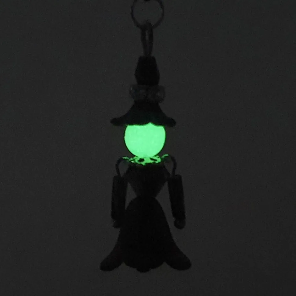 Hexen sind nicht nur gruselig – sie können auch freundlich, lustig und bezaubernd sein. Diese kleine, völlig harmlose Hexe ist ein handgemachter Anhänger, der dich mit ihrem stilvollen schwarzen Rock, einer grünen Bluse und funkelnden Glitzerelementen begeistert. Besonders raffiniert: Ihr Köpfchen leuchtet im Dunkeln grün nach, was ihr einen einzigartigen Charme verleiht.