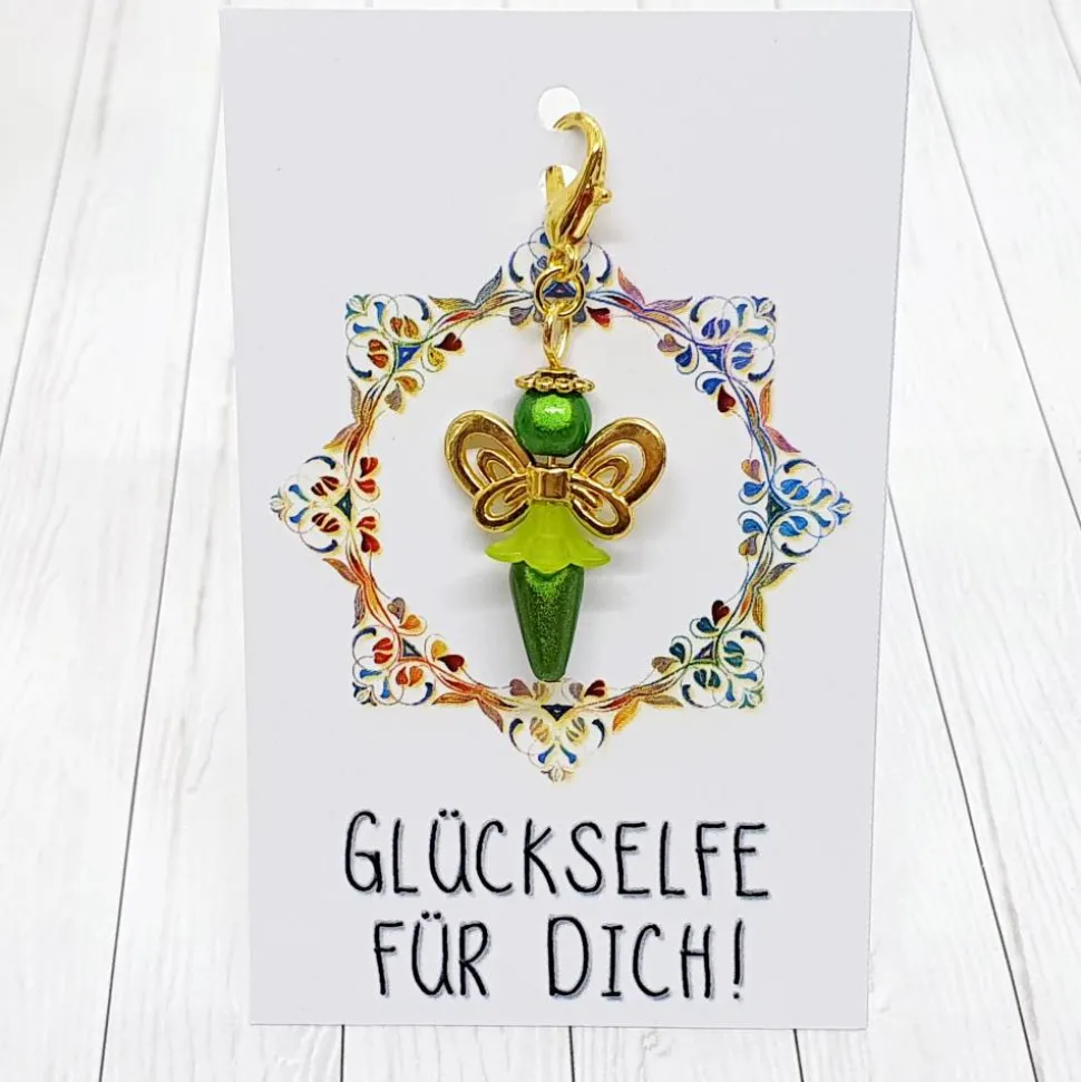 Vielseitig einsetzbar: Nutze die Schmetterlingselfe als Glücksbringer, kleines Mitbringsel, Gastgeschenk für Feierlichkeiten oder als liebevolles Präsent für Freundinnen. Zu jedem Anhänger gehört ein kleines Schmuckkärtchen, das Du aus verschiedenen Designs frei wählen kannst. Bitte gib bei Deiner Bestellung die Kennung Deines Wunschkärtchens an.