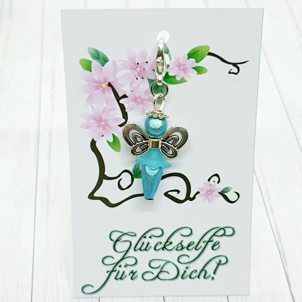 Entdecke die Glücksbringer Schmetterlingselfe silberfarben/türkis – ein zauberhafter Anhänger, der Dir ganz viel Glück bringt! Diese zarten Geschöpfe stammen aus verwunschenen Wäldern und sind als kleine Glücksboten bekannt.