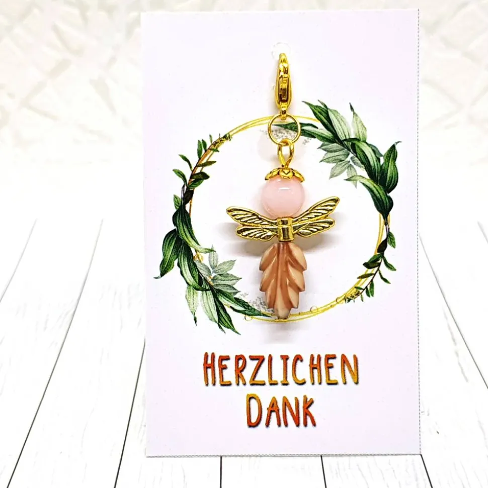 Die Glücksbringer Waldelfe goldfarben/rosa bringt Magie und Freude in deinen Alltag! Diese zarten Geschöpfe stammen aus verwunschenen Wäldern und machen als handgefertigte Anhänger jedes Geschenk zu etwas ganz Besonderem.