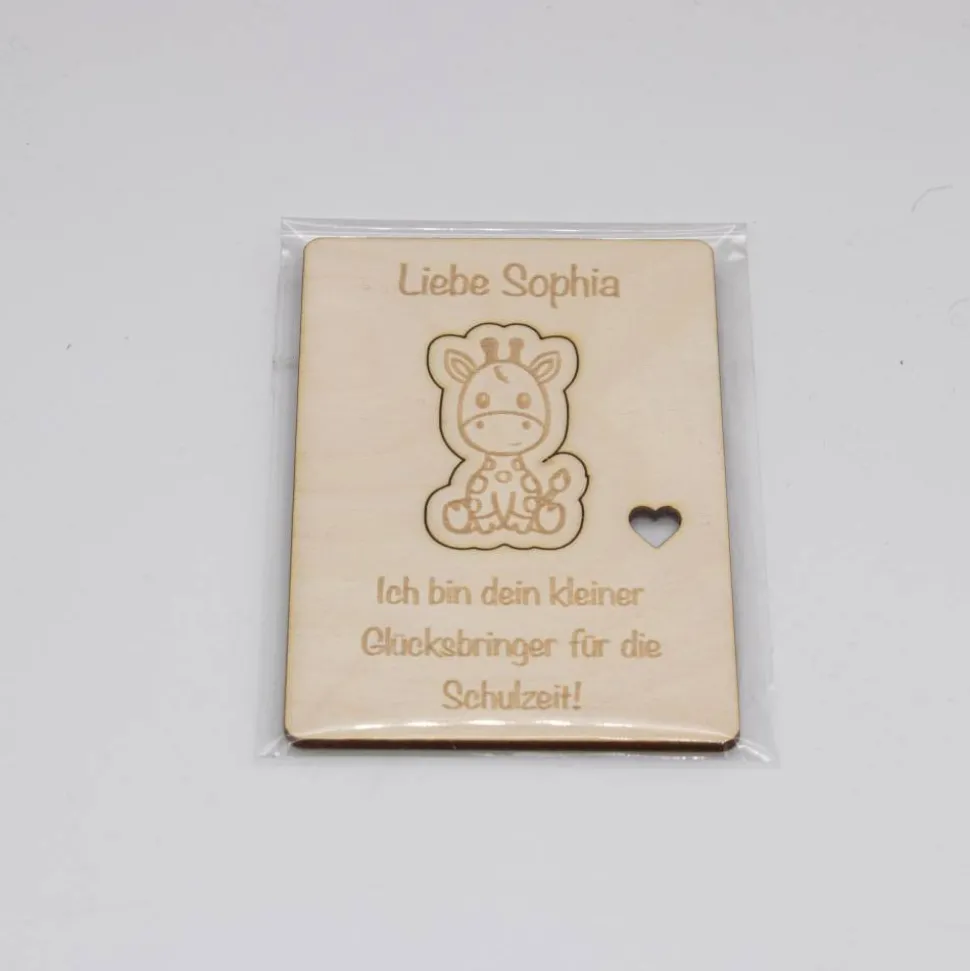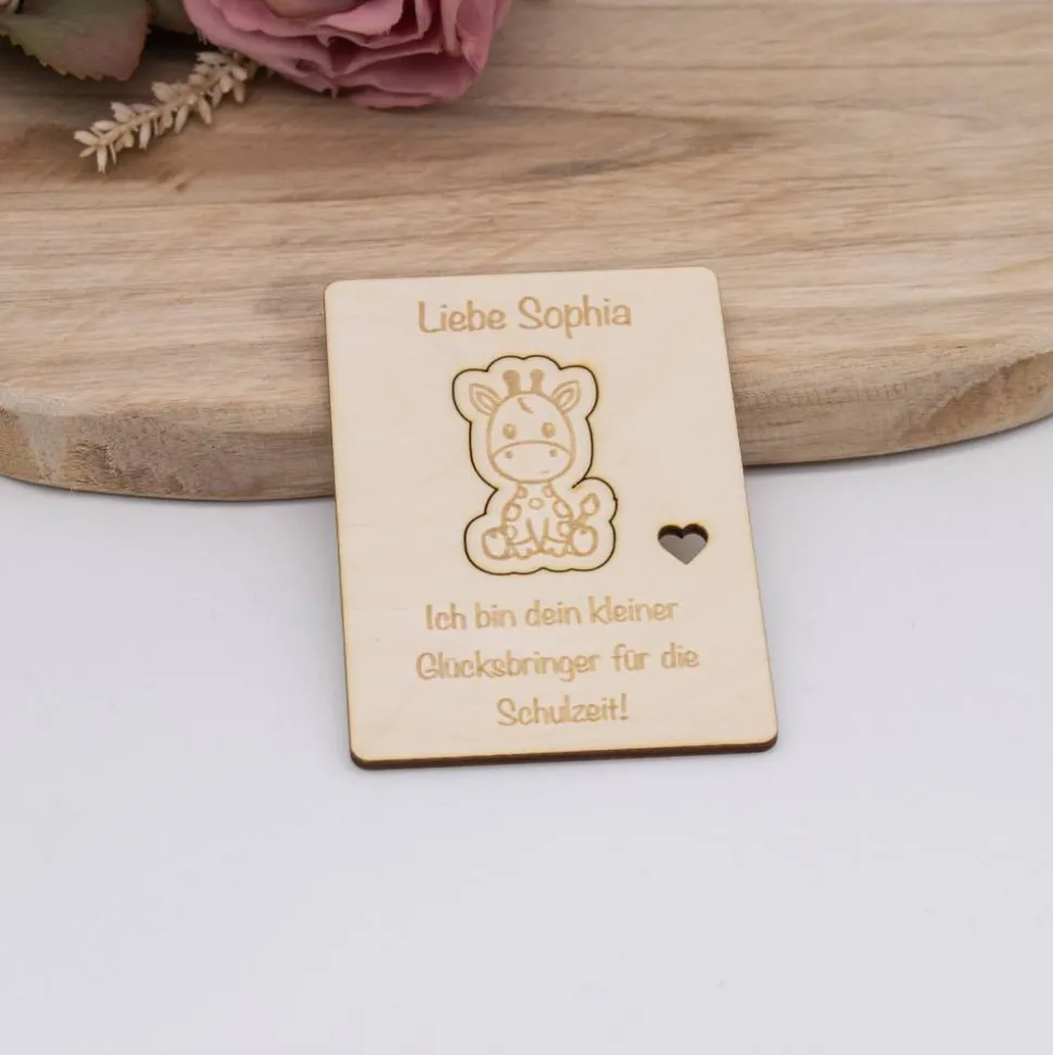 Dieser personalisierte Glücksbringer aus Holz ist ein liebevolles Geschenk zur Einschulung und ein täglicher Begleiter für den Schulanfang. Ideal für Schultüte, Federmappe oder Schulranzen – als Mutmacher für den ersten Schultag.