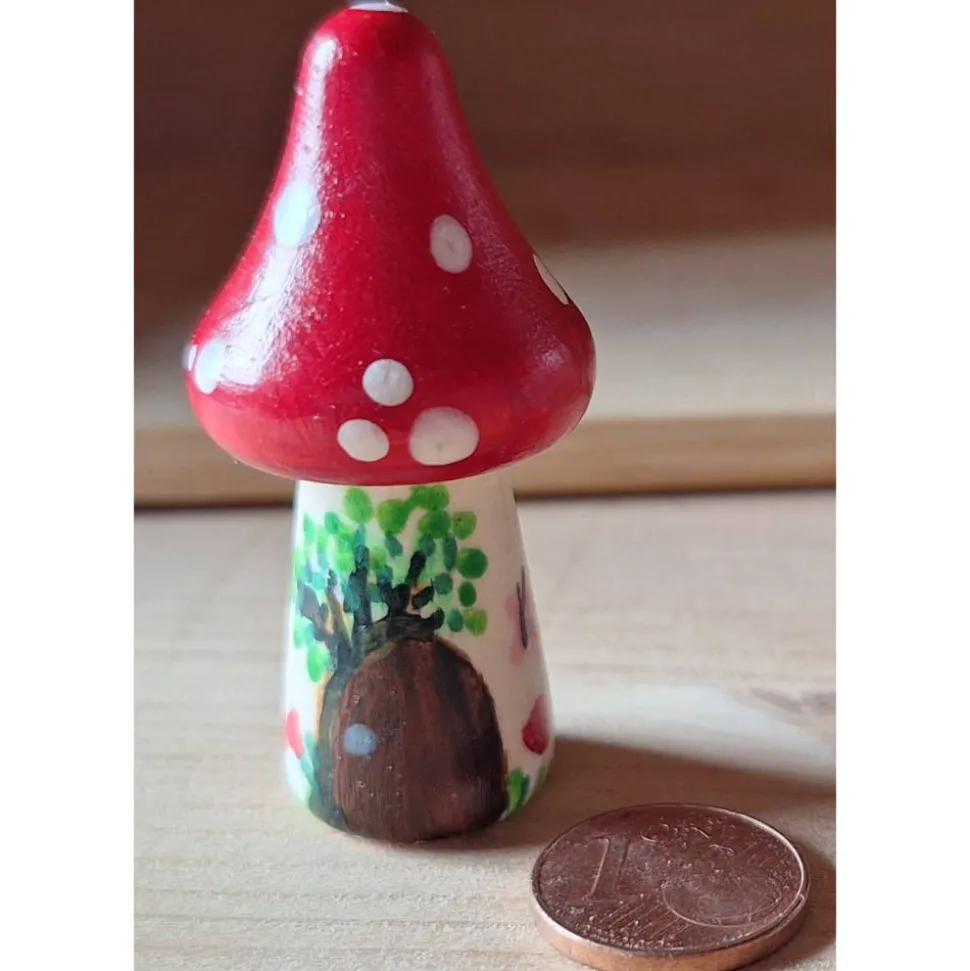 Mit einer Größe von 4,9 cm ist das Pilzhaus vielseitig einsetzbar und durch die Handarbeit immer einzigartig in Maserung und Pinselstrichen. Eventuelle kleine Unregelmäßigkeiten oder unterschiedliche Oberflächen machen jedes Häuschen zum besonderen Einzelstück und sind kein Mangel, sondern betonen den natürlichen Charme des Materials.