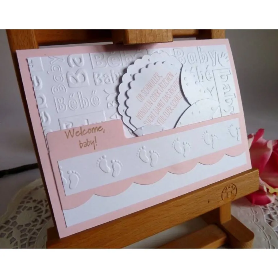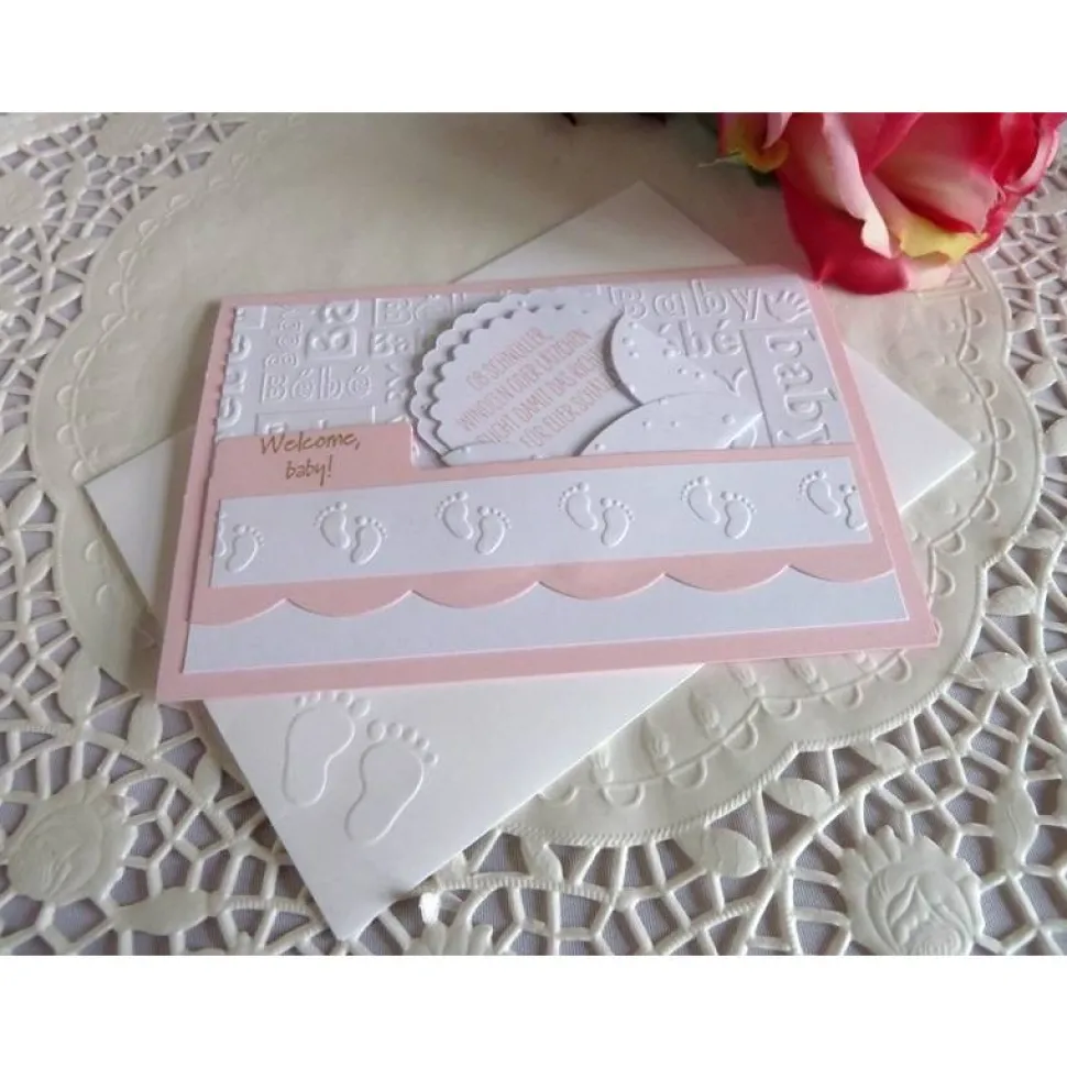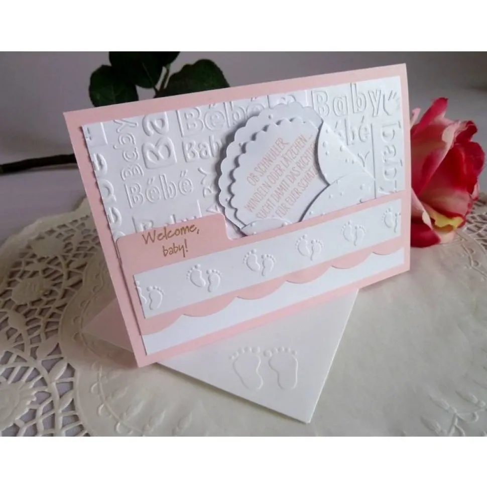 Das Kuvert hat aufgeprägte Babyfüsschen