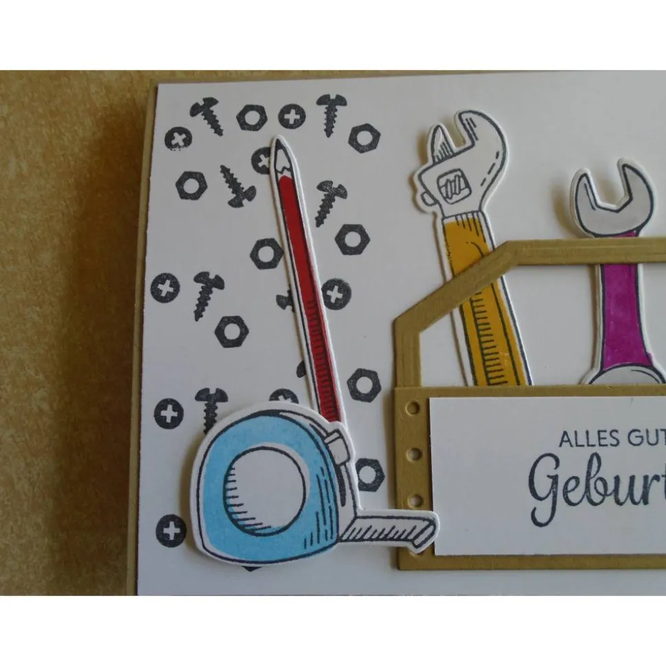 Hier seht ihr eine schöne Glückwunschkarte zum Geburtstag für den Handwerker mit Werkzeug Mann oder Frau ..