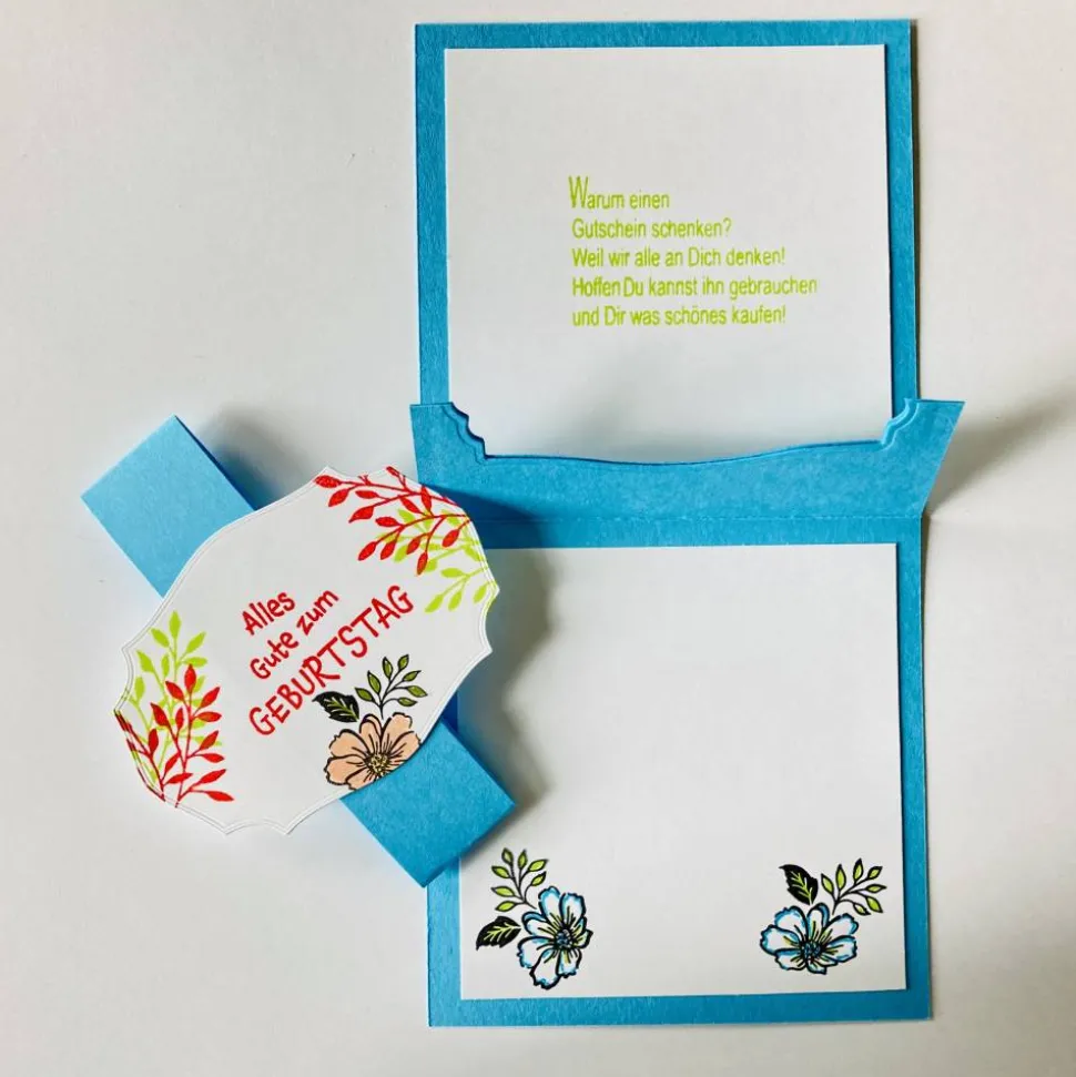 Zusammengehalten wird die Gutscheinkarte/ Geldgeschenkkarte mit einer Banderole.