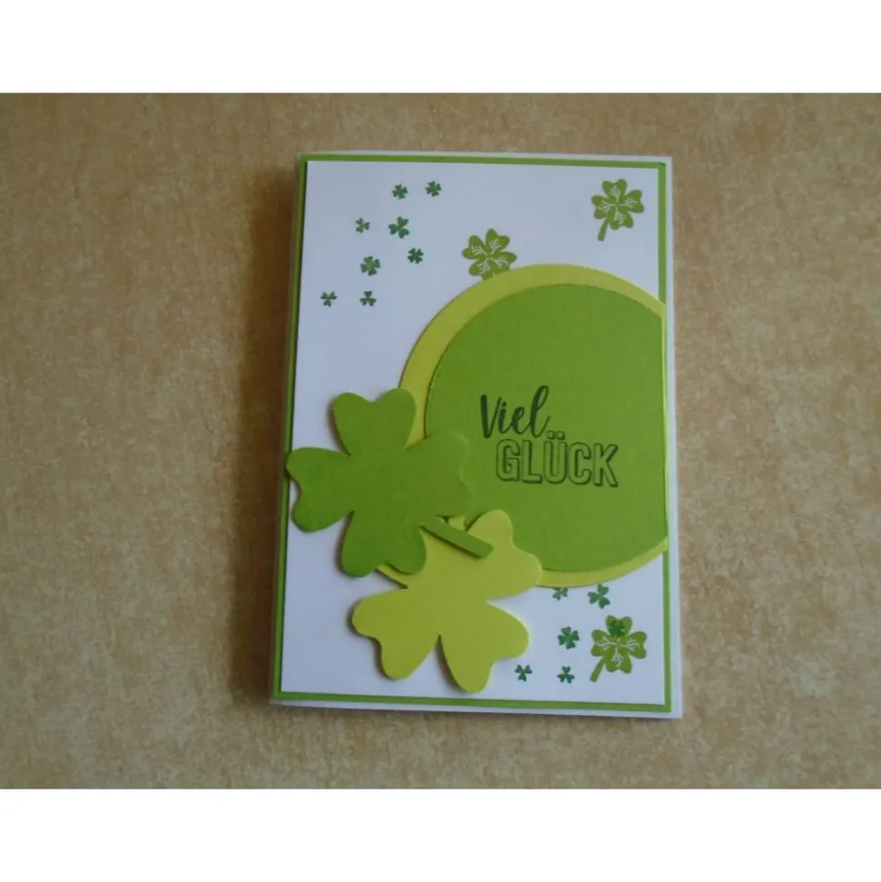 in liebevoller Handarbeit wurde diese Grusskarte Geburtstagskarte mit Viel Glückmit Kleeblatt entworfen und angefertigt …jede Karte ist ein Unikat…