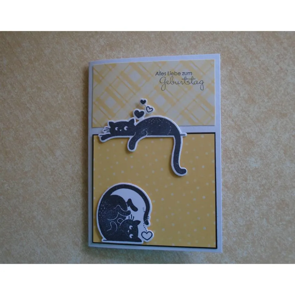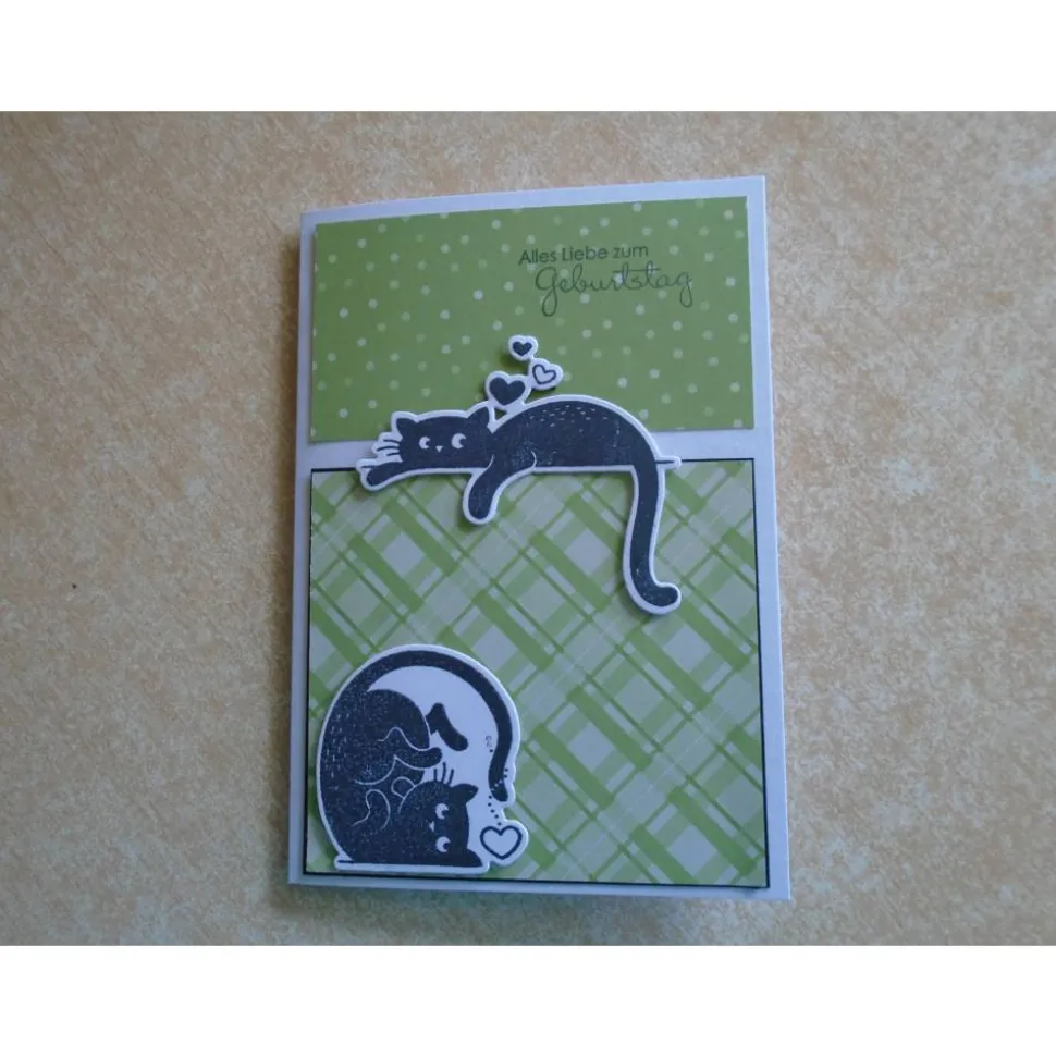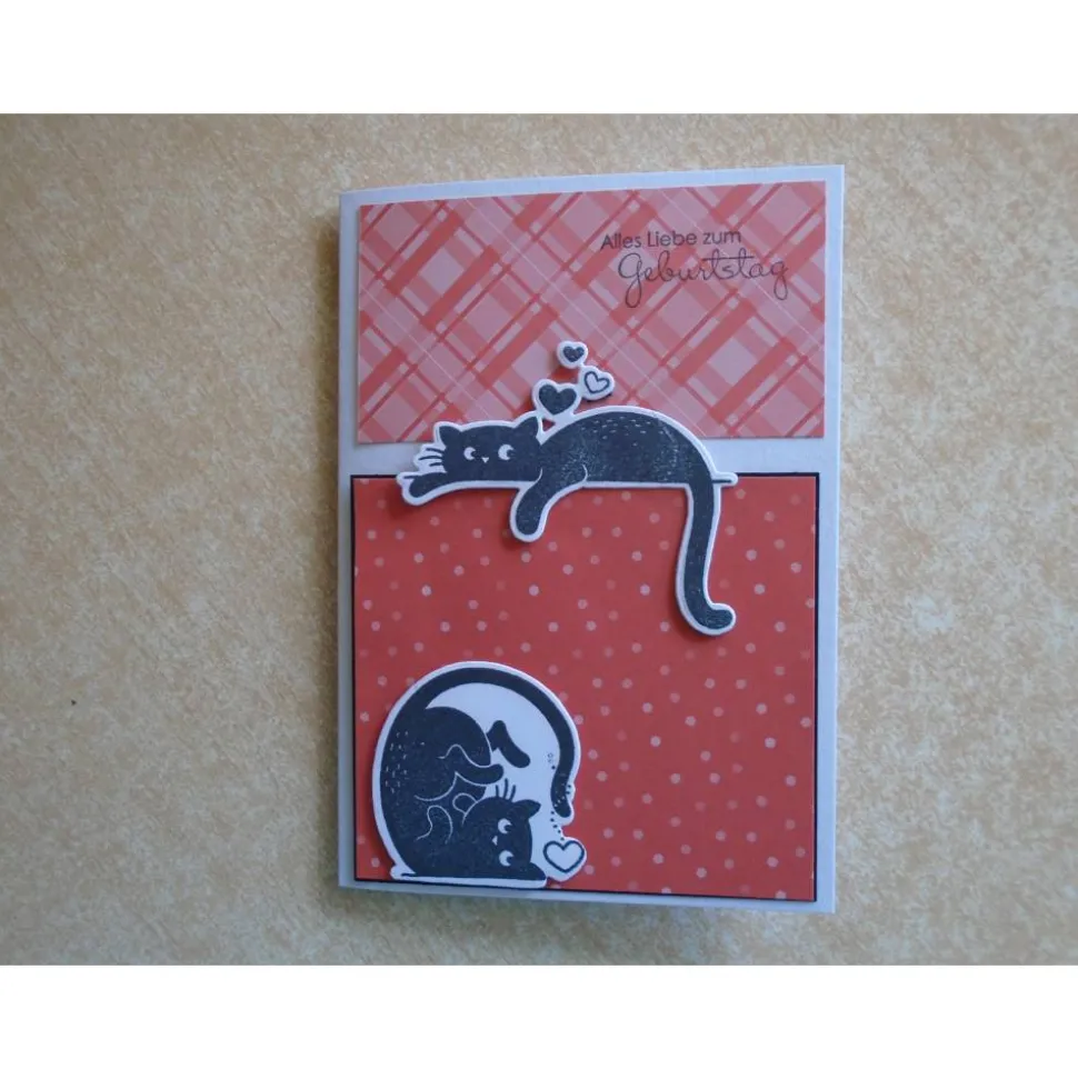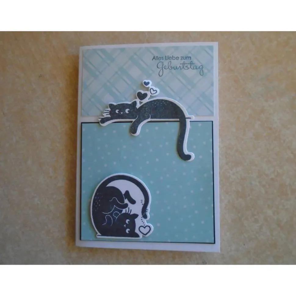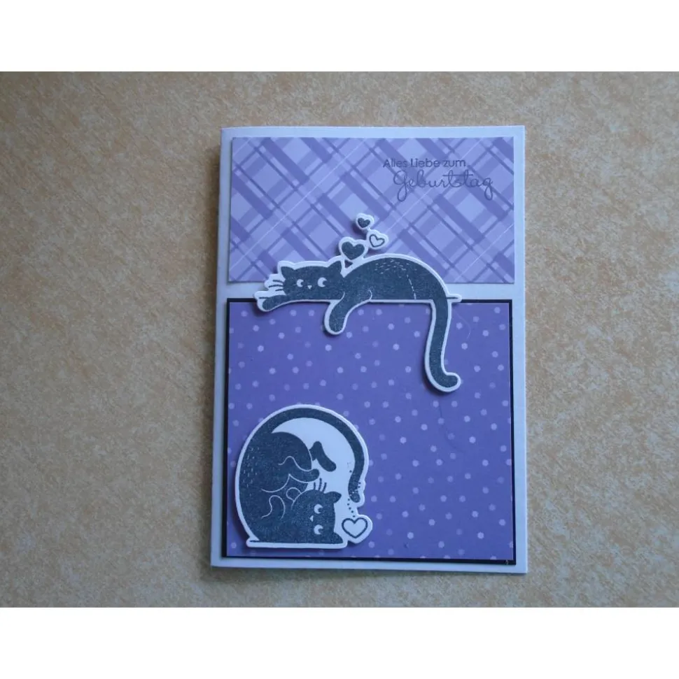 diese Grusskarte Geburtstagskarte wurde gefertigt mit Motive Katze Katzen als Gestanzt und Gestempelt…