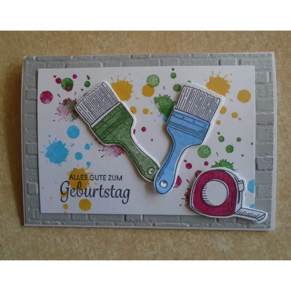 verziert habe ich die hübsche Geburtstagskarte Glückwunschkarte als Maler Lackierer mit Papier,Stempel,Stanzer…