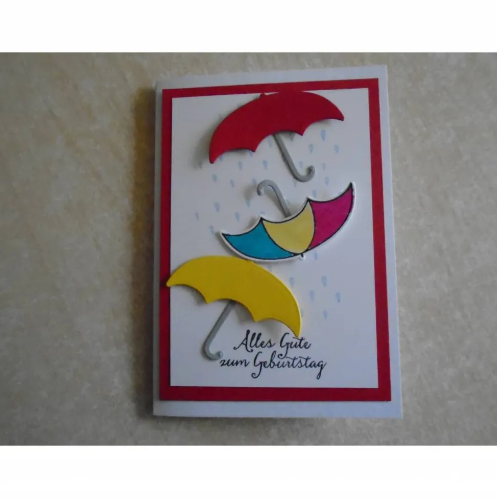 Hier seht ihr eine schöne Geburtstagskarte mit lustigen Rgenschirm für einen Mann oder Frau