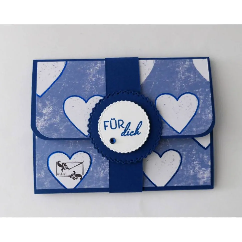 „Für dich“ bestempelt und mit einem Schmuckstein in Blau beklebt.