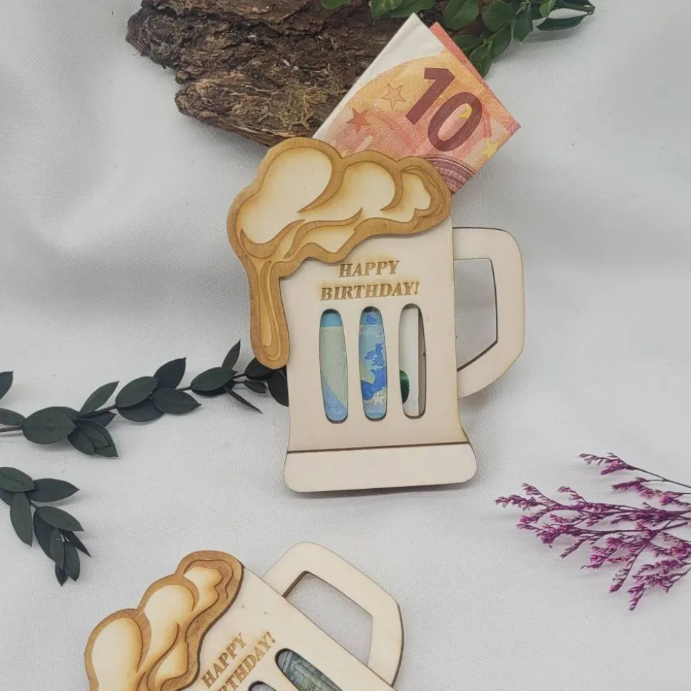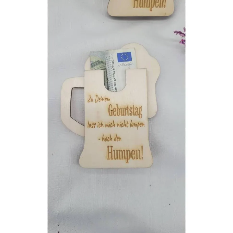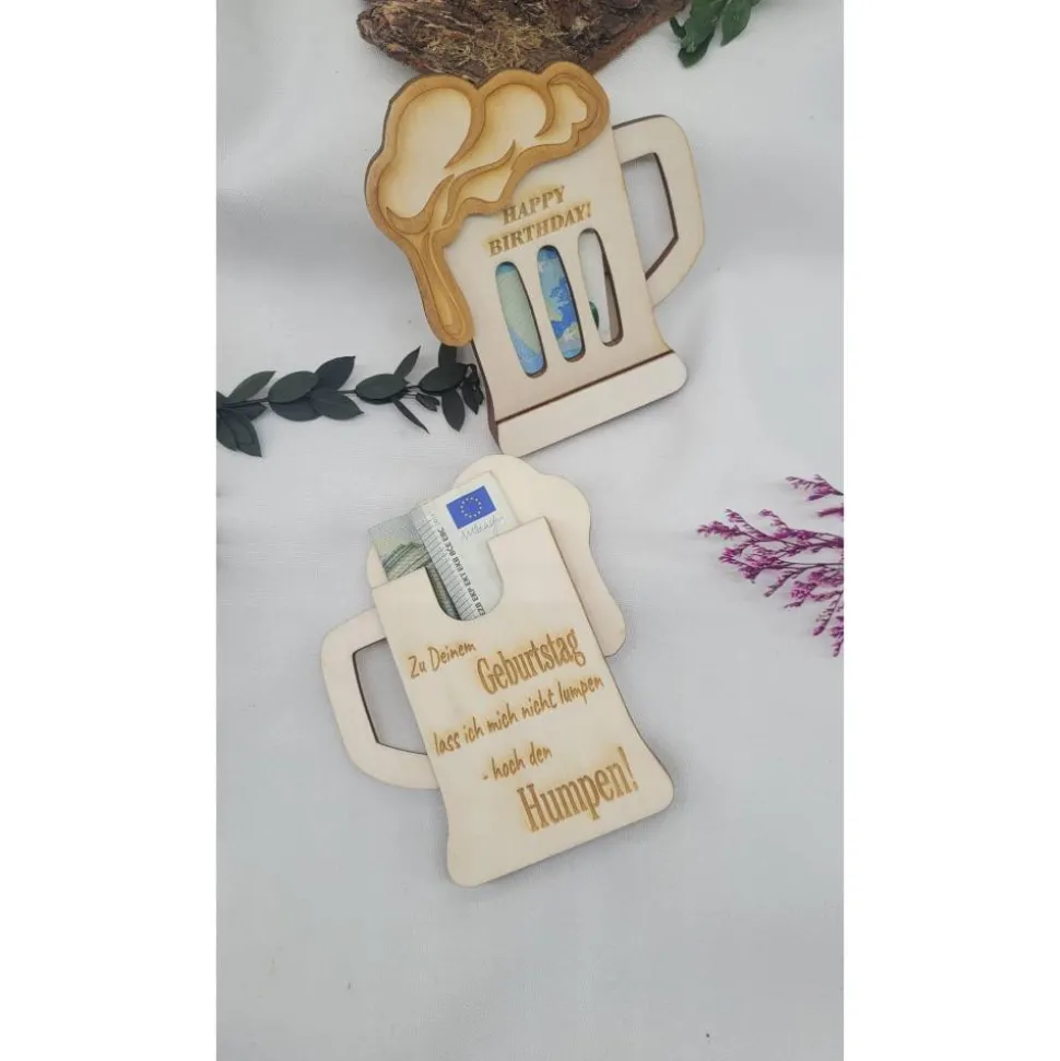 Überraschen Sie einen Mann mit dem Geldkarte Bierkrug – das perfekte Geschenk für jeden Geschmack! Der Holzkrug kann mit Geld gefüllt werden und hinterläßt sicher ein schmunzeln auf den Lippen des Beschenkten. Ein originelles und persönliches Geschenk, das sicher gut ankommt. Die Rückseite ist graviert mit dem Spruch: