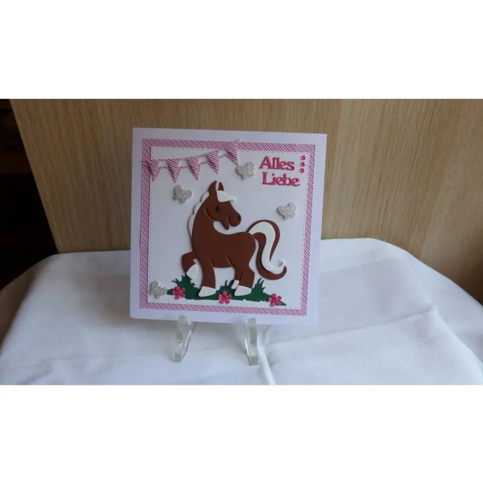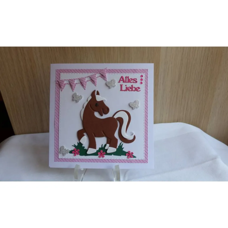 verziert mit einem Pferd,Schmetterlinge,Banner und kleinen Blümchen.