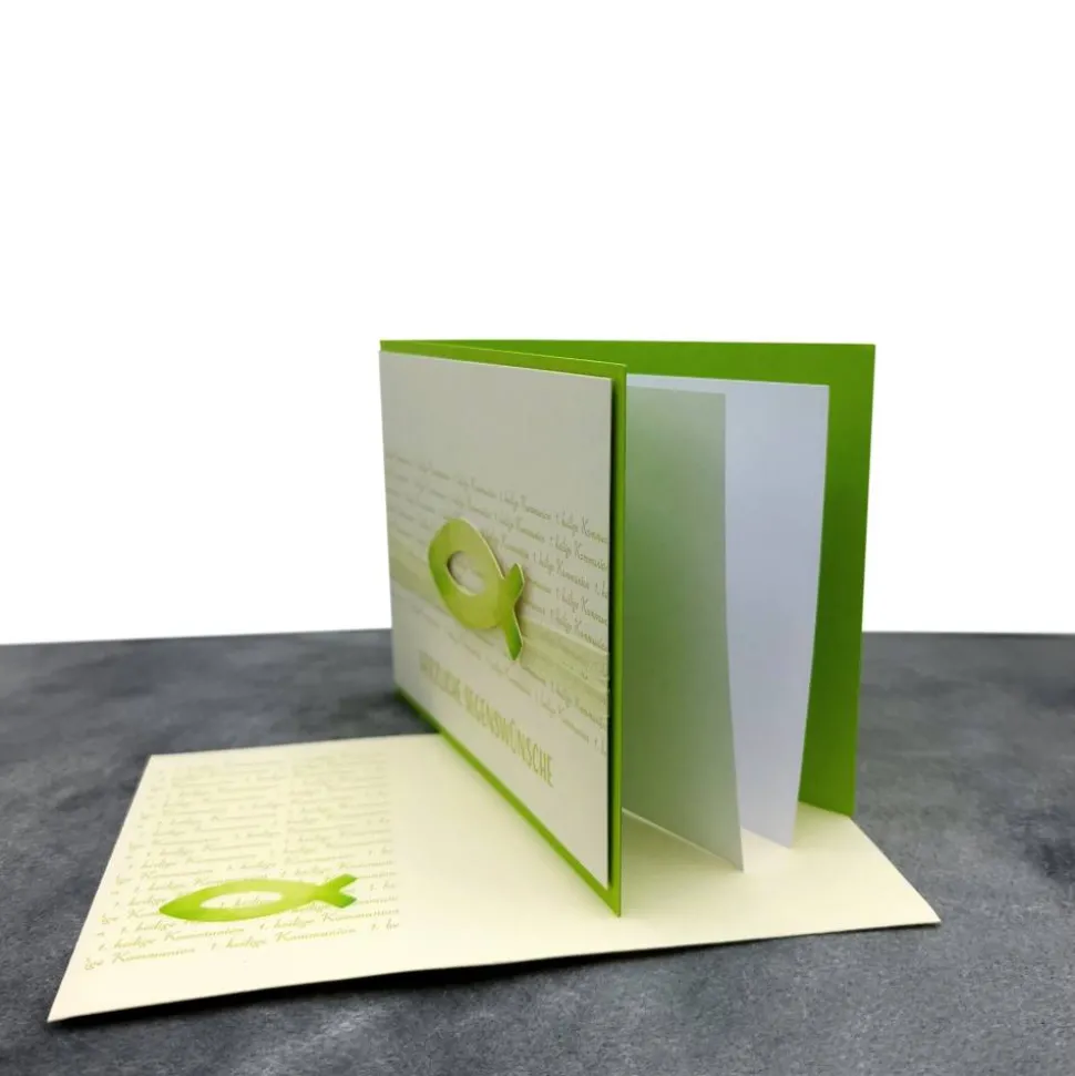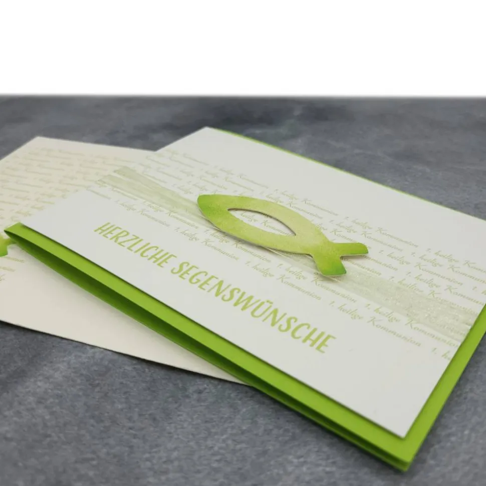 Diese stilvolle Doppelkarte mit Einlegeblatt & Umschlag ist die perfekte Ergänzung zu deinem Geldgeschenk und setzt deine Glückwünsche zu Taufe, Firmung oder Konfirmation stilvoll in Szene. Das Fisch-Design in Maigrün macht die Karte zu einem echten Hingucker und unterstreicht den festlichen Charakter des Anlasses.