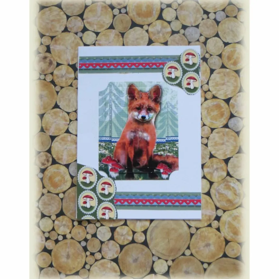 Die Glückwunschkarte mit dem Fuchs wurde mit verschiedenen bedruckten Kartenkartons verziert. Der Fuchs, Reineke selbst ist in der 3d Optik aufeinander geklebt.