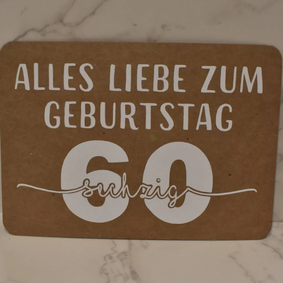 Diese liebevoll gestaltete Geburtstagskarte aus hochwertigem Kraftpapier ist die perfekte Wahl, um einem besonderen Menschen zum 60. Geburtstag eine persönliche Freude zu bereiten. Mit ihrem modernen und zugleich natürlichen Design verbindet sie stilvolle Schlichtheit mit einer herzlichen Botschaft. Auf der Vorderseite der Karte befindet sich der Schriftzug „Alles Liebe zum Geburtstag“ sowie die Zahl „60“ mit dem handschriftlich wirkenden Wort „sechzig“ – ein harmonisches Detail, das die Karte zu einem besonderen Blickfang macht.