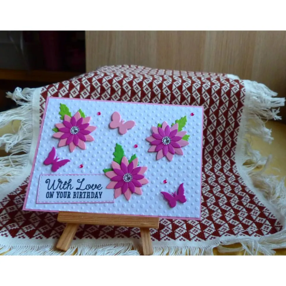 verziert mit Blättern ,Blume,Schmetterlinge,Schmucksteinchen.