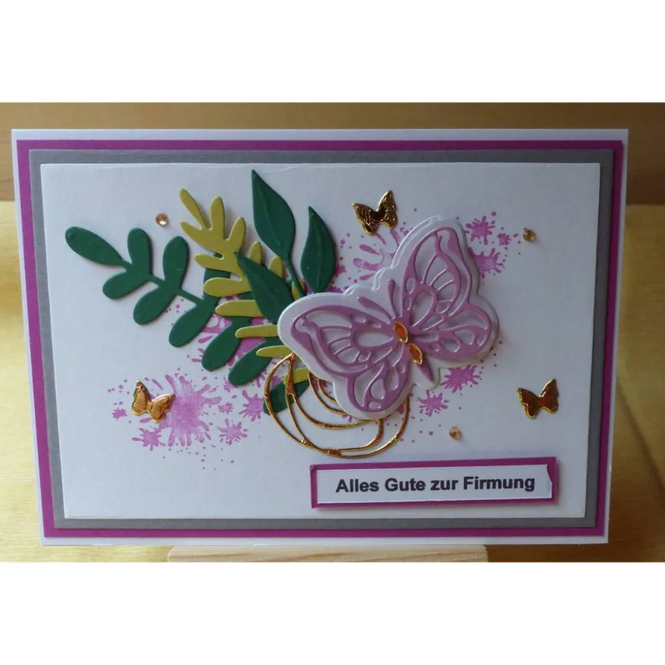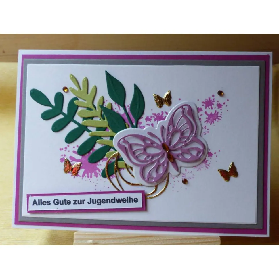 als Deko sind 3 bätterzweige,Schmetterlinge angebracht.
