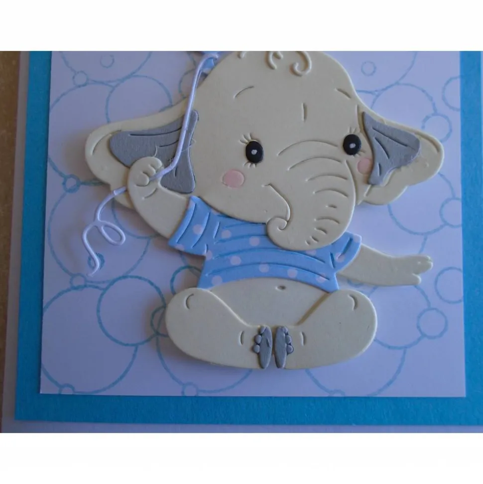 Hier seht ihr eine schöne Glückwunschkarte zur Geburt für einen Jungen mit süssen Elefant..