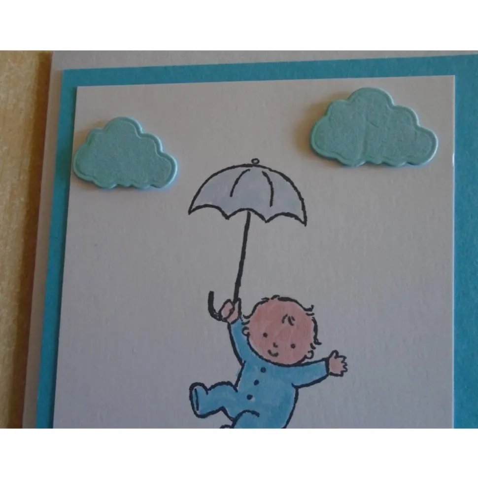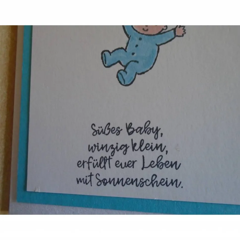 diese Geburtskarte wurde verziert mit…Babymotiv,Stempelfarbe,