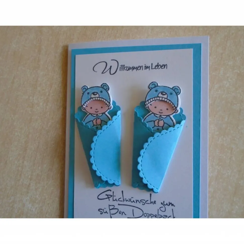 diese Geburtskarte oder Taufkarte ist für Jungen.. diese Glückwunschkarte für Zwillinge Jungen ist gestanzt gestempelt und coloriert