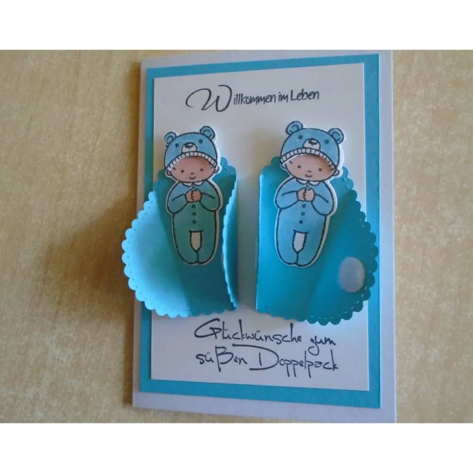 Hier seht ihr eine schöne Glückwunschkarte zur Geburt oder Taufe von Zwillingen von Jungen..