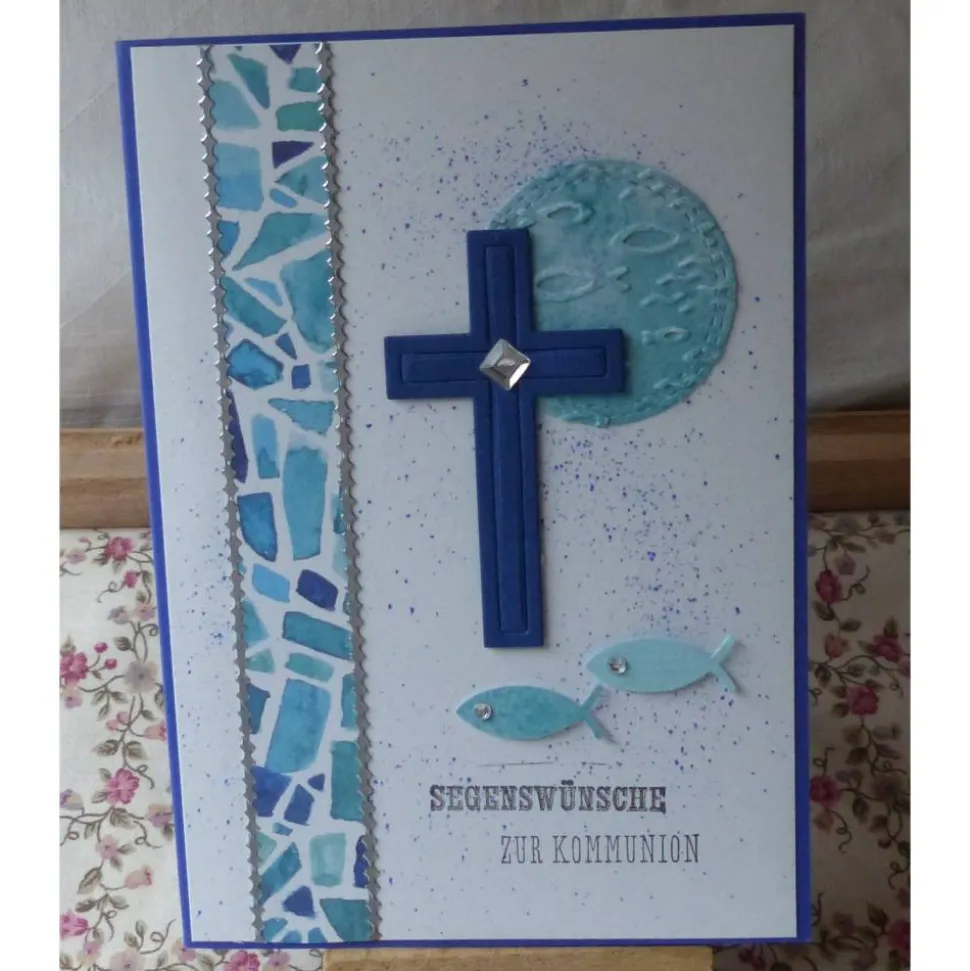 Grundkarte ist dunkelblau und mit weißen Tonkarton unterlegt,