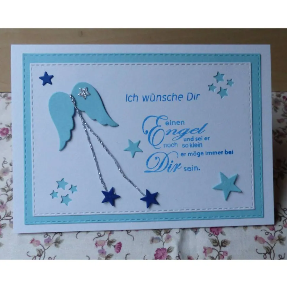 Die harmonische Farbkombination in Rosatönen und Blautönen verziert mit Flügeln und Sternen sind ganz bezaubernd.
