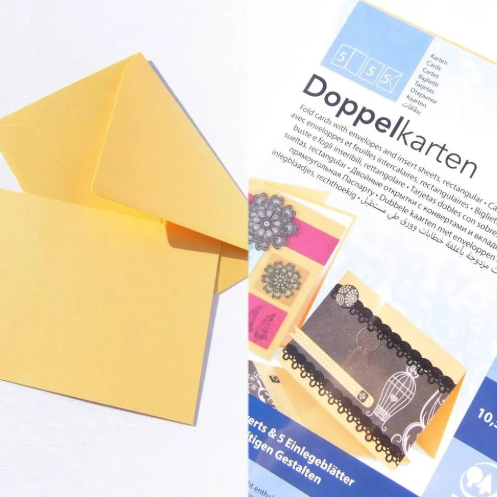 In einem 5er Set sind jeweils Karten, Kuverts und Einleger enthalten. Die goldfarbenen Grußkarten eignen sich besonders für Einladungen zur Goldenen Hochzeit oder auch für Weihnachtskarten.